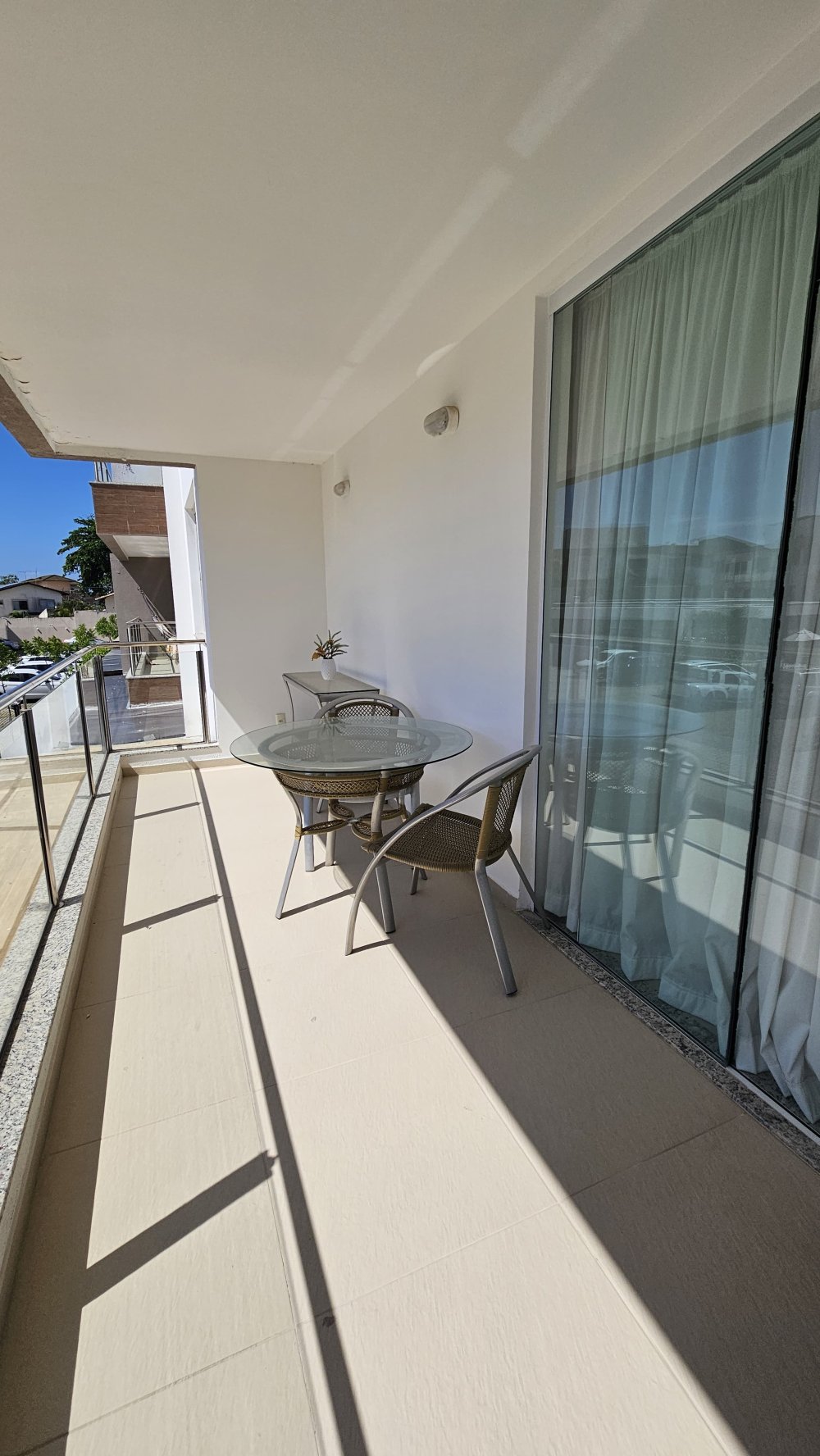- Móveis da varanda ( aparador e mesa com 3 cadeiras de aço náutico):