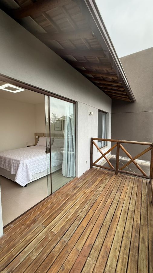- Suíte Master 1 (1º andar): Cama Queen Size, AR SPLIT, Varanda, TV SMART, Guarda Roupas, Armários e Criado Mudo. Banheiro da suíte master.