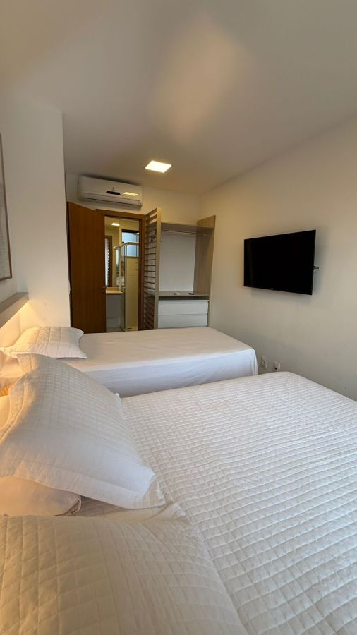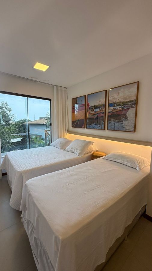 - Suíte 02 (Térreo): Cama de Casal, Cama de Solteiro, AR SPLIT, TV SMART, Armários e Criado Mudo. Banheiro da suíte 02.