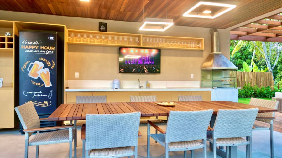 - Espaço gourmet com churrasqueira e cervejeira,