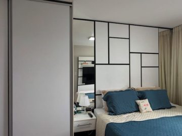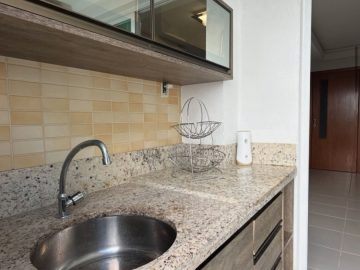 Apartamento com planejados, iluminação, forno, cooktop, coifa e aparelhos de ar condicionado