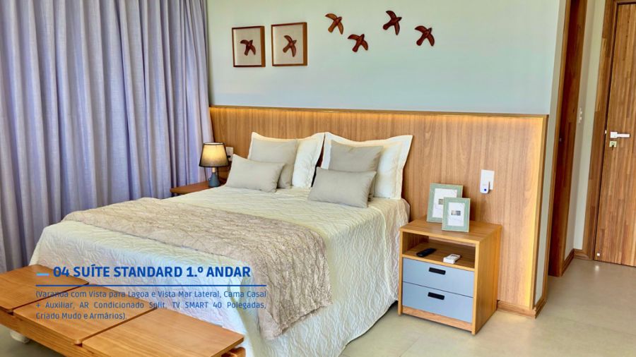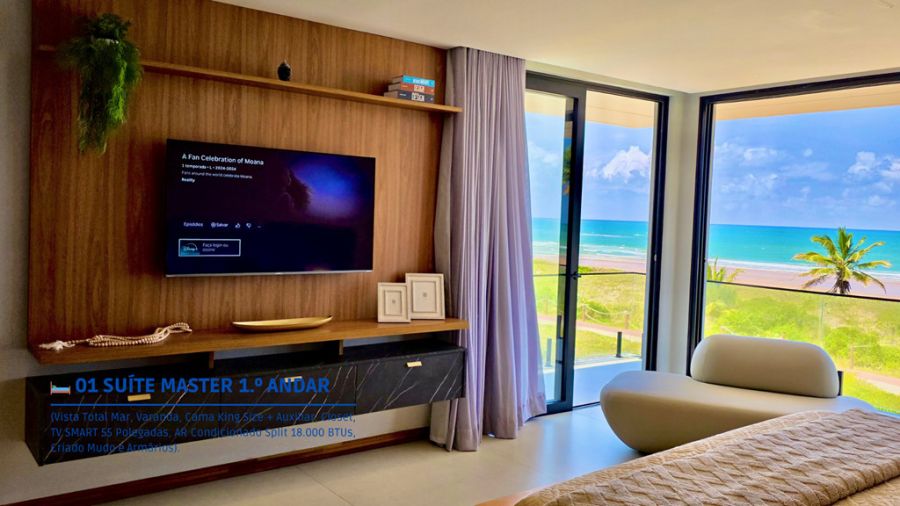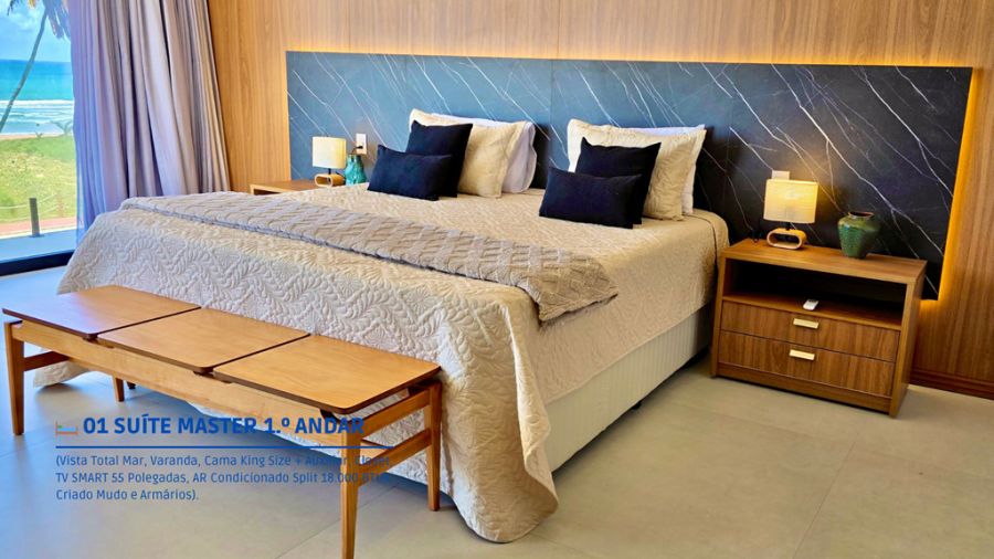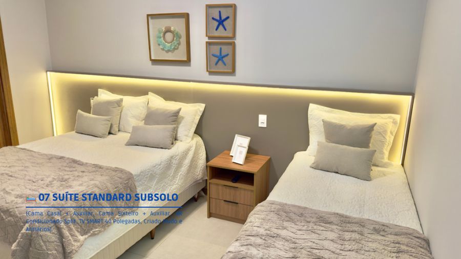 - Cinco Suítes finamente decoradas todas climatizadas com TV SMART, corredor com rouparia de cama, mesa e banho