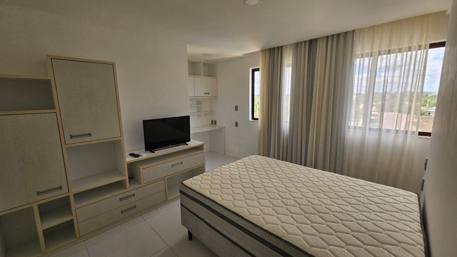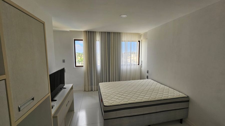 - Quartos: Dormitórios amplos com piso em porcelanato branco, armários embutidos e grandes janelas que garantem ótima ventilação
