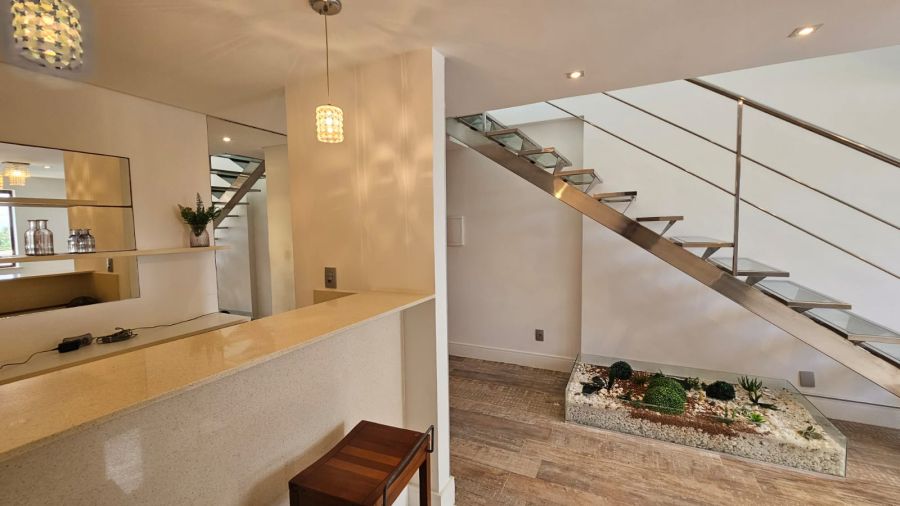 - Sala de TV/Estar: Espaço aconchegante com painéis de marcenaria sob medida, iluminação indireta em rasgos no teto e projeto de gesso